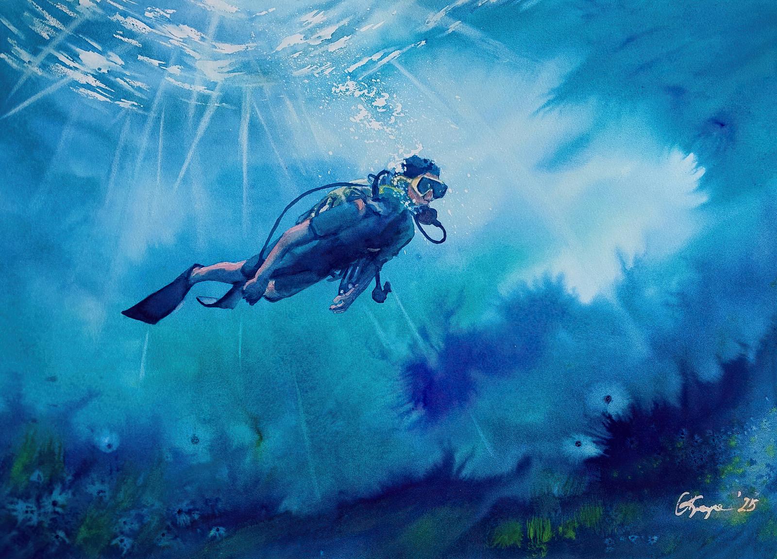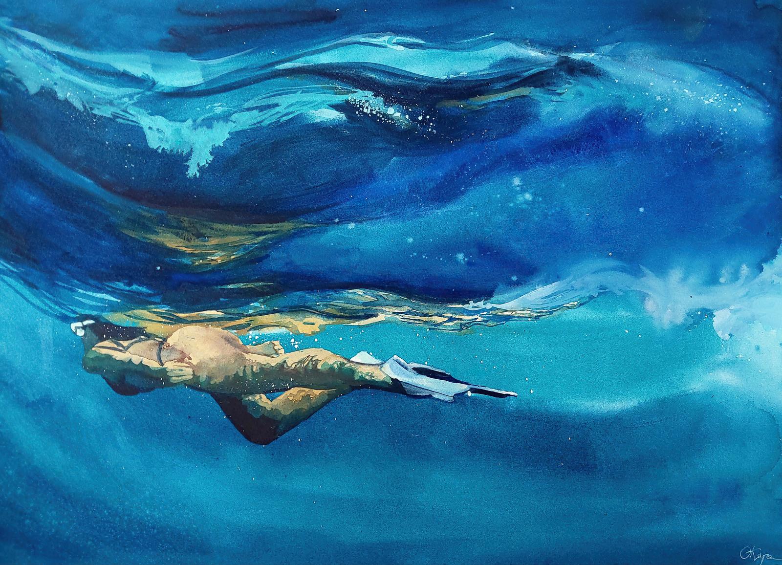 Давайте продолжим наше подводное путешествие с новой историей. В этой работе мы передадим ощущение свободы и движения под волнами.