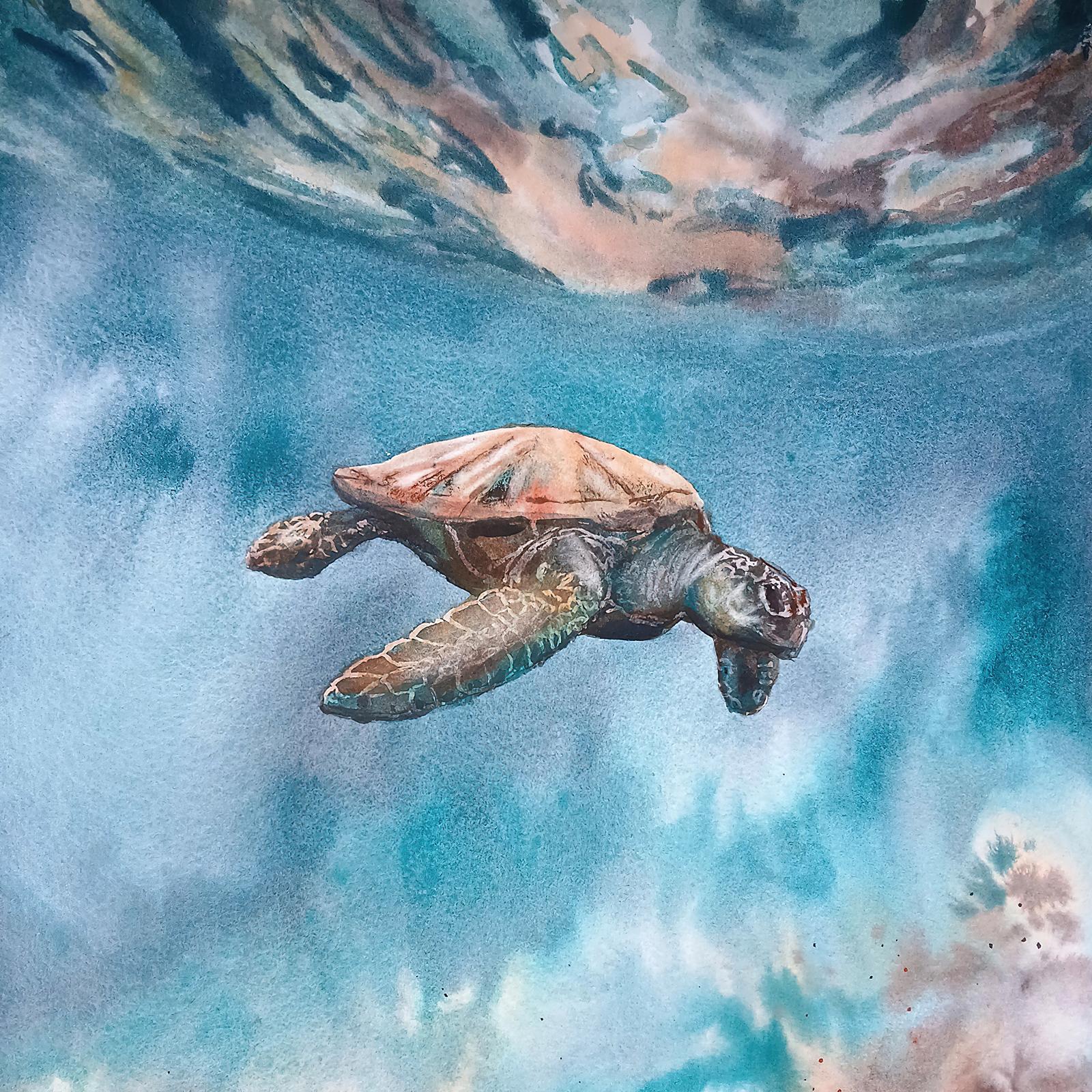 Давайте начнём практическую часть курса с морской черепахи. В этом уроке мы поработаем с цветом, фактурой и атмосферой подводного мира.