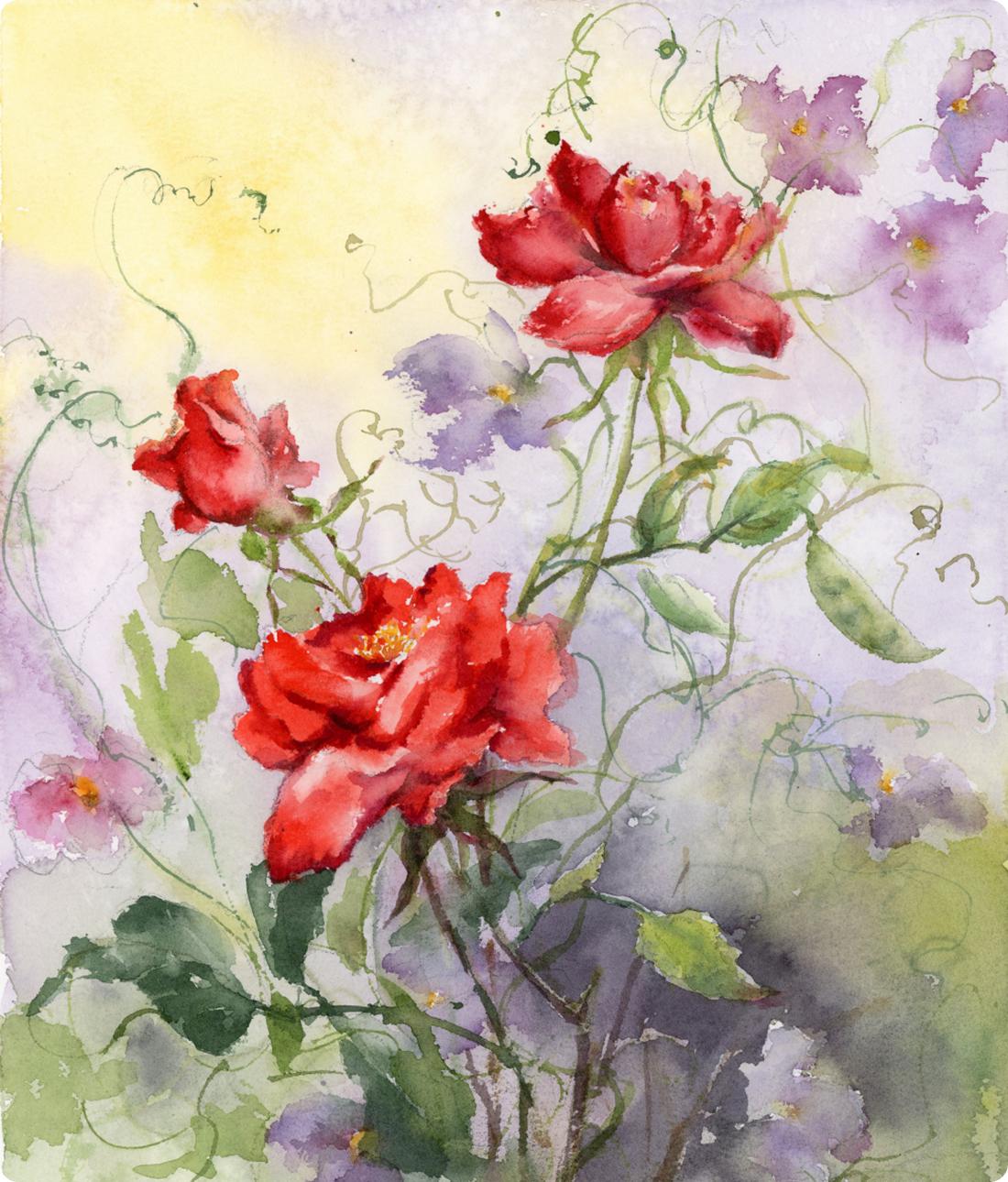 Когда вы будете создавать красивые работы с цветочными композициями, птицами в природе и уютными окнами, украшенными цветами, вы будете совершенствовать свои навыки и всё больше ценить акварель как материал.