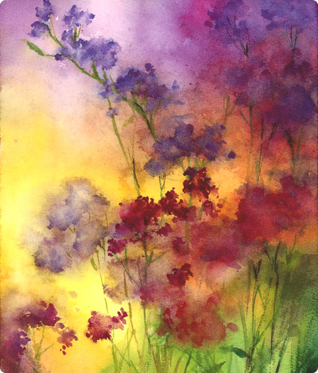 - использовать приём растекания цвета, чтобы получить интересный и живой эффект;