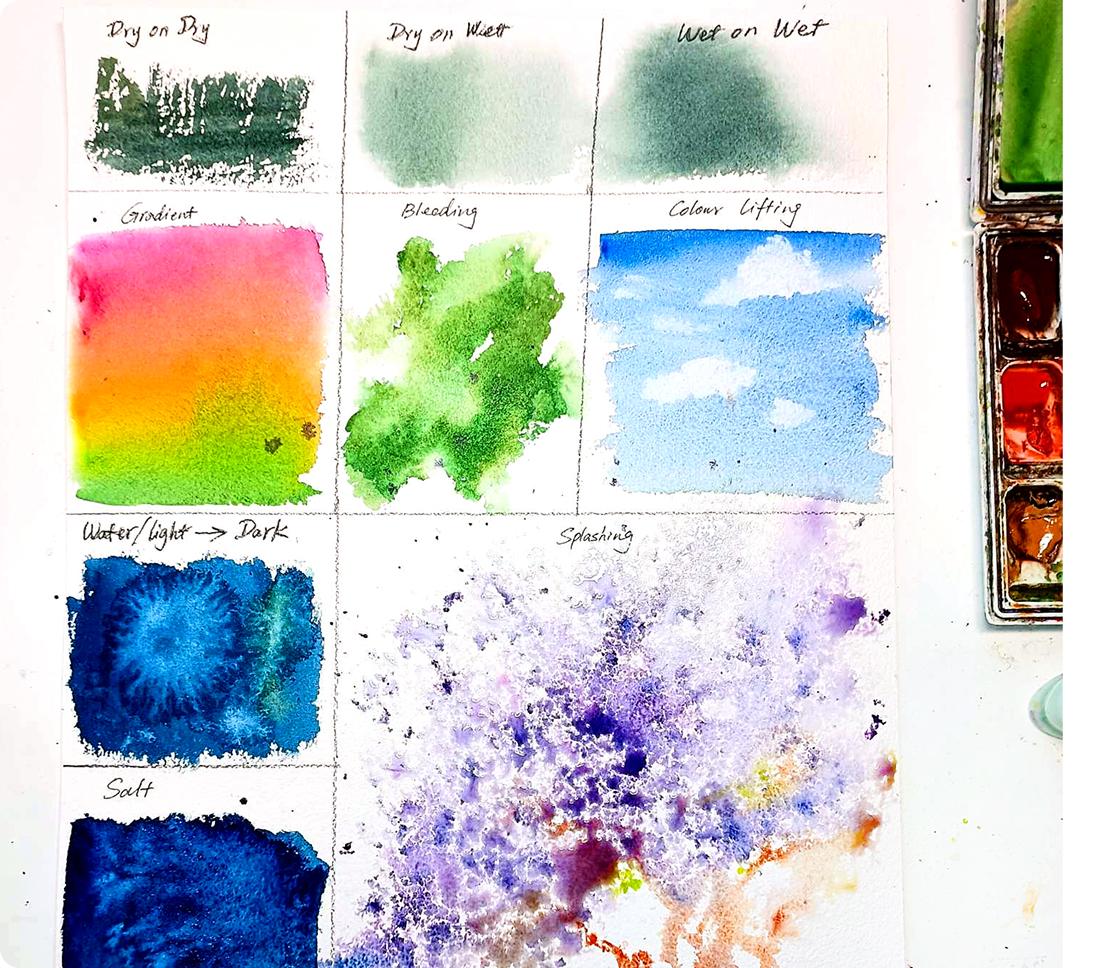На протяжении всего курса вы будете разбираться в смешивании цветов и композиции, чтобы получить хорошее понимание того, как создавать гармоничные и привлекательные работы. Также вы потренируетесь в разных техниках работы кистью: по-сухому — для чётких краёв, по-мокрому — для мягких переходов, а ещё попробуете приём негативной росписи, чтобы добавить глубины вашим работам.